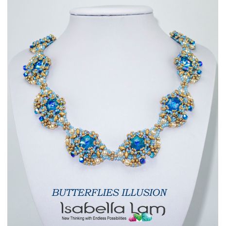 If you have been interested in giving beaded beads a try, this is the perfect kit for you. You will create elegant and unique Beadwork Necklace beaded with Swarovski round Rivoli stones, Swarovski crystal beads, Pearl beads, Czech SuperDuo two hole beads, Miyuki Japanese seed beads, which will most certainly get you noticed.