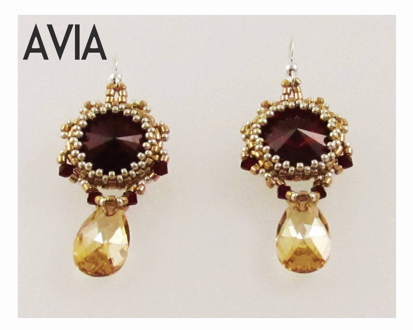 AVIA Swarovski Rivoli Earrings PDF Pattern Tutorial instructions is a great way to learn how to weave with amazing Swarovski crystal bicones, Swarovski Rivoli and Drops, in a creative way to make this elegant style earrings.