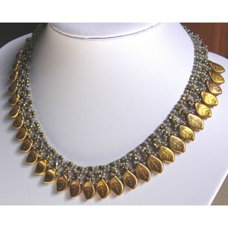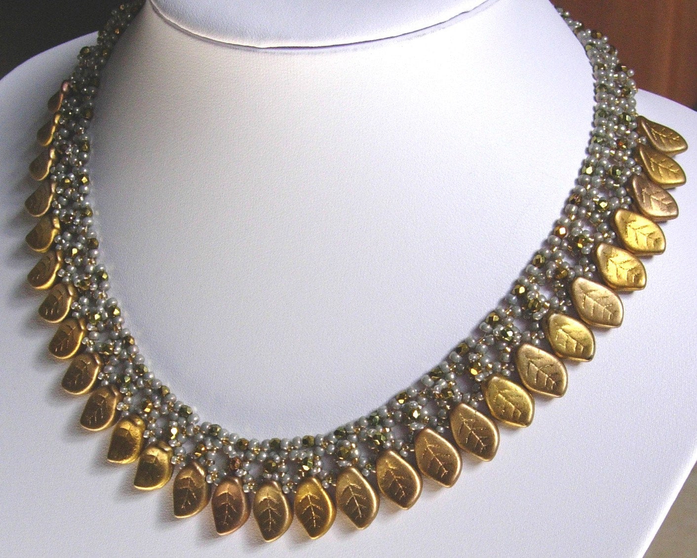 Golden Leaf Necklace beading instructions is a great way to learn single RAW row- Right Angle Weave. Use right angle weave in a creative way to make this elegant style necklace.