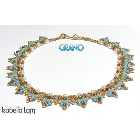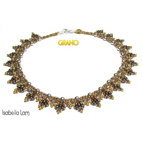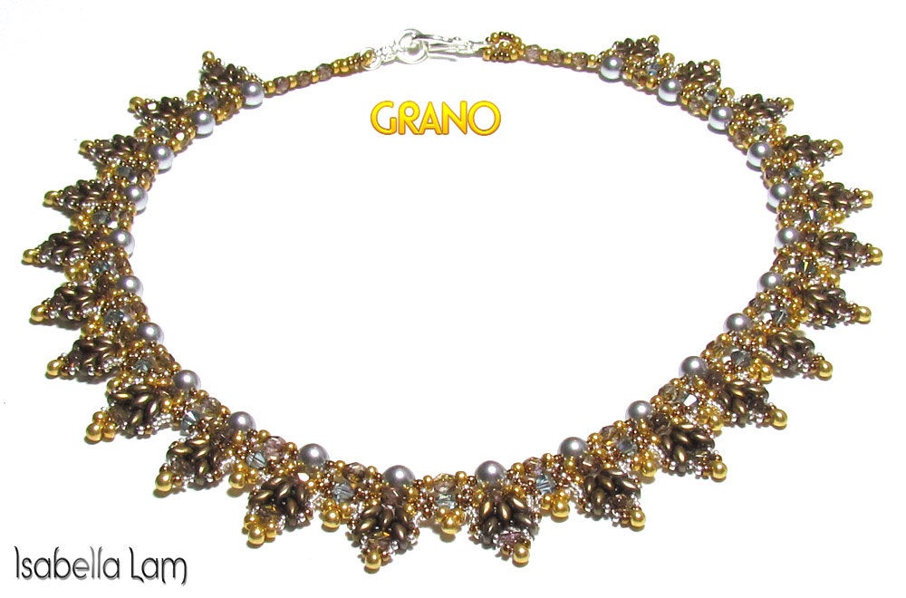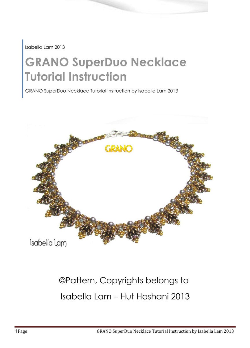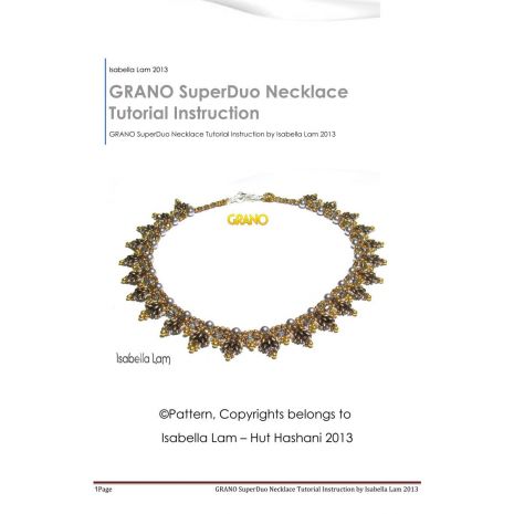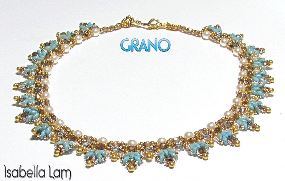 GRANO SuperDuo Beadwork Necklacetutorial PDF instructions is a great way to learn how to weave with Czech SuperDuo two hole beads, Czech Pearl and FIRE Polished beads , Miyuki round glass seed beads, and sparkling Swarovski crystal beads in a creative way to make this elegant style necklace.