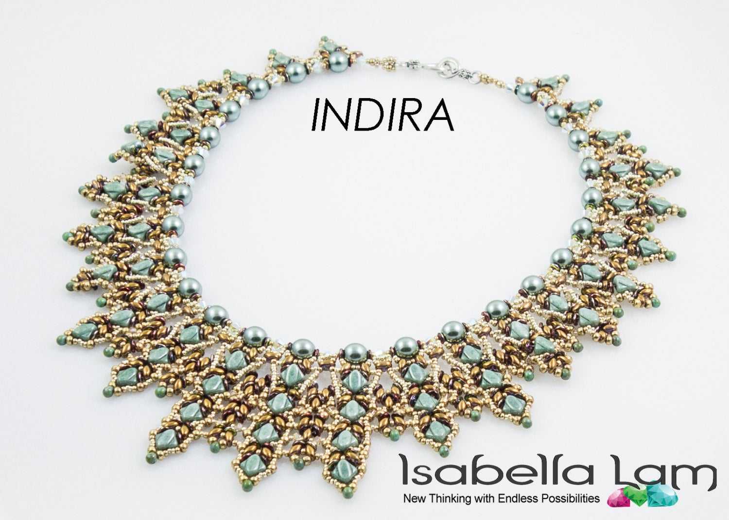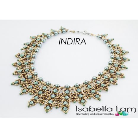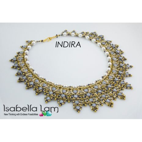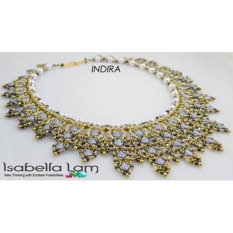 INDIRA Silky SuperDuo and O-Beads Beadwork Necklace Pdf tutorial instructions is a great way to learn how to weave with amazing Silky and SuperDuo two hole beads, Czech O-Beads, Czech Pearls, Miyuki drop and round glass seed beads and of course Swarovski crystal bicones, in a creative way to make this elegant style necklace.