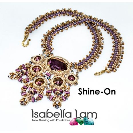 Shine-On Beadwork Necklace Pdf tutorial instructions is a great way to learn how to weave with amazing Swarovski Fancy stone and Rivoli, Two hole Rulla and SuperDuo, Miyuki round glass seed beads and of course Swarovski crystal bicones, in a creative way to make this elegant style necklace.