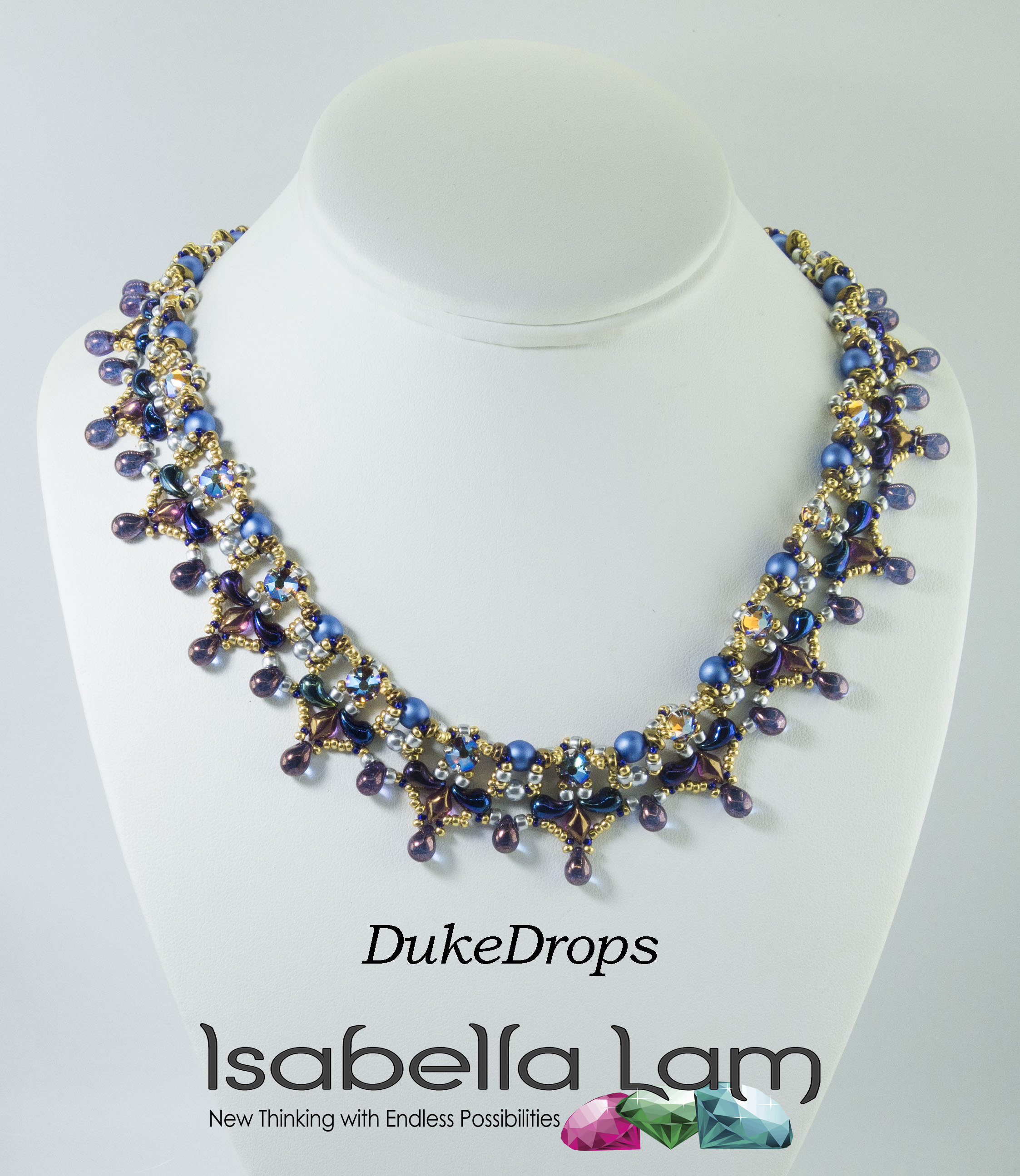FEEADORA'S Beadwork Necklace PDF Pattern Tutorial instructions is a great way to learn how to weave with amazing ZOLIDUO two hole beads, superduo two hole beads, GemDuo two hole beads, Swarovski Roses Montees, Pearl beads, Czech drop beads Miyuki round seed beads in a creative way to make this elegant style necklace.